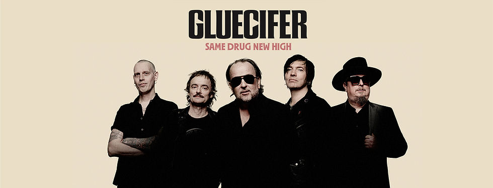 At a time when the world’s inflationary desire for change seems to stop at nothing and no one, Gluecifer appear to be the proverbial solid rock. The Norwegian band, one of the most successful in their country, who immediately returned to their former strength after their reunion in spring 2018, continue to play their passionate melange of irresistible punk rock, traditional rock‘n’roll and dazzling glam elements just the way their fans want to hear it. The new studio album, ‘Same Drug New High’, the group’s first in more than twenty years, leaves no doubt that founding members Biff Malibu (vocals) and Captain Poon (guitar) plus long-standing bandmates Raldo Useless (guitar), Danny Young (drums), and Peter Larsson (bass) sound not only more mature and skilled, but also more versatile and determined than ever. ‘Same Drug New High’ will be available on Steamhammer/SPV from 16 January 2026 on CD, LP and for digital download, a compelling statement in the shape of an uncompromising rock‘n’roll album that could hardly be more typical of Gluecifer.
